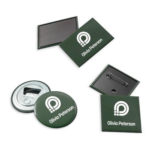 Gepersonaliseerde buttons en magneten met naamdruk – persoonlijke promotionele geschenken die waardering tonen Nieuw