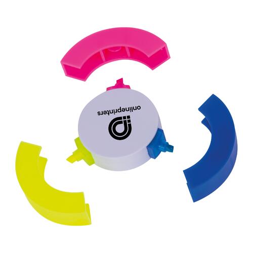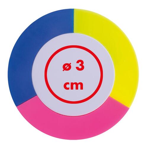 - De 3-in-1 markeerstift heeft een roze, een gele en een blauwe markeerstift