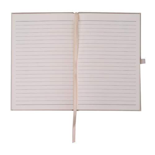 - Het notitieboek heeft bovendien een bladwijzer en een penlus