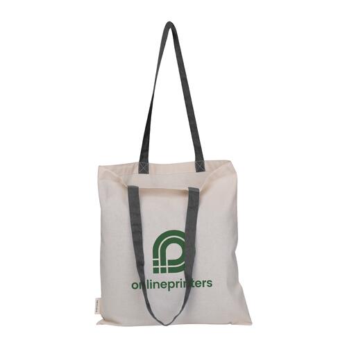 - Katoenen tas met twee lange hengsels, gemaakt van 75 % gerecycled katoen en 25 % gerecycled PET