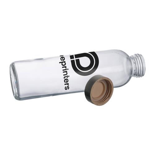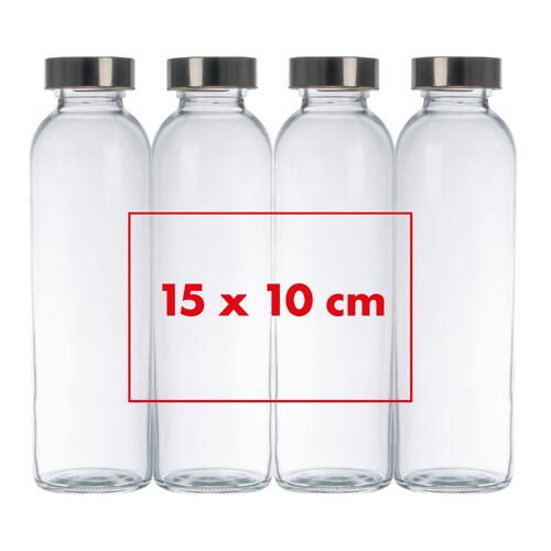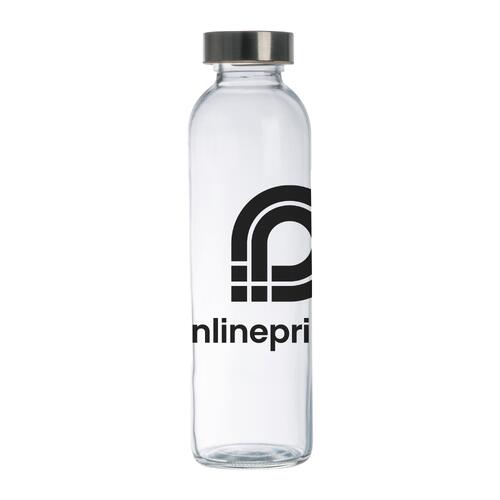 - Glazen drinkfles met een inhoud van 600 ml en een roestvrijstalen dop