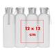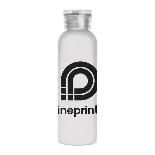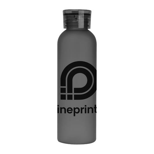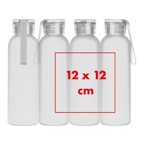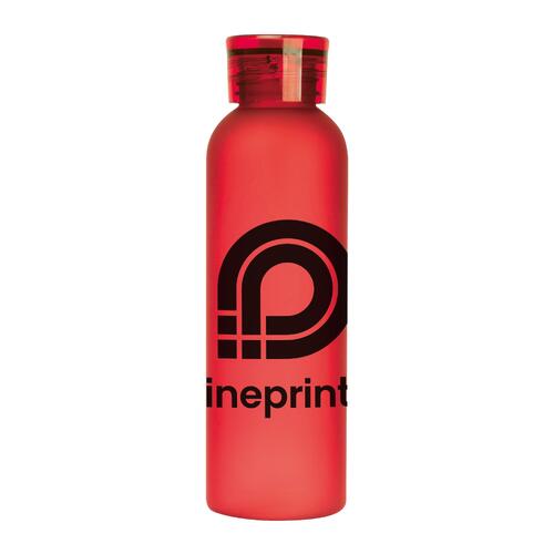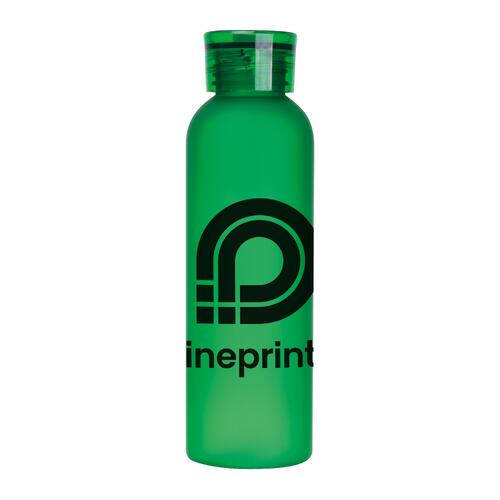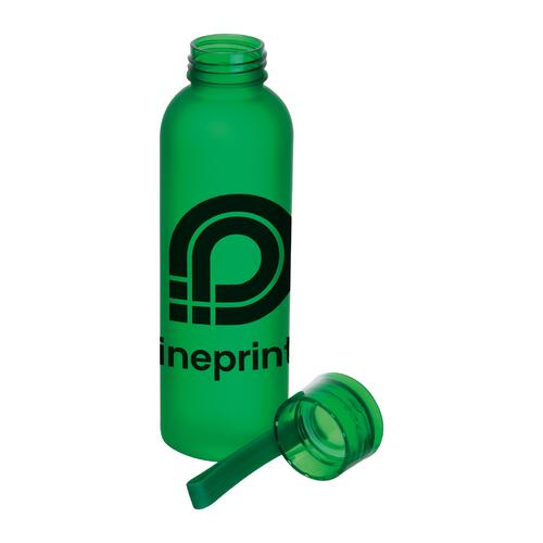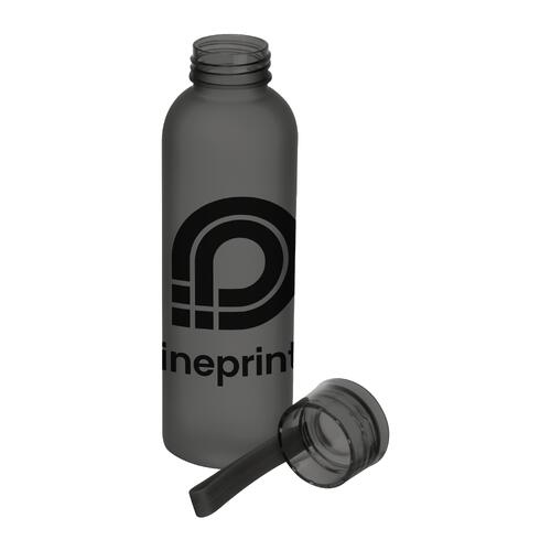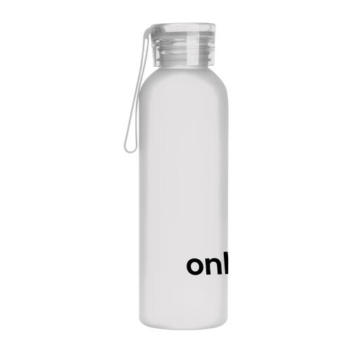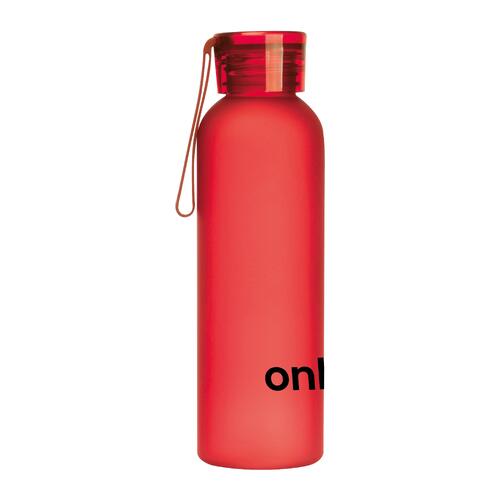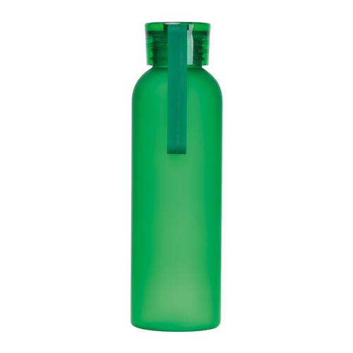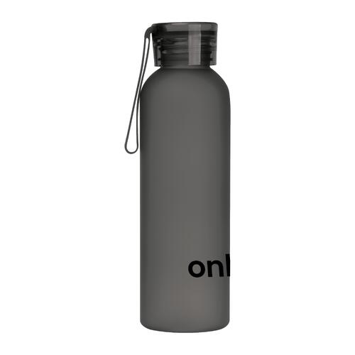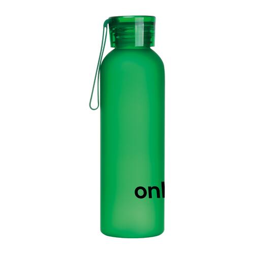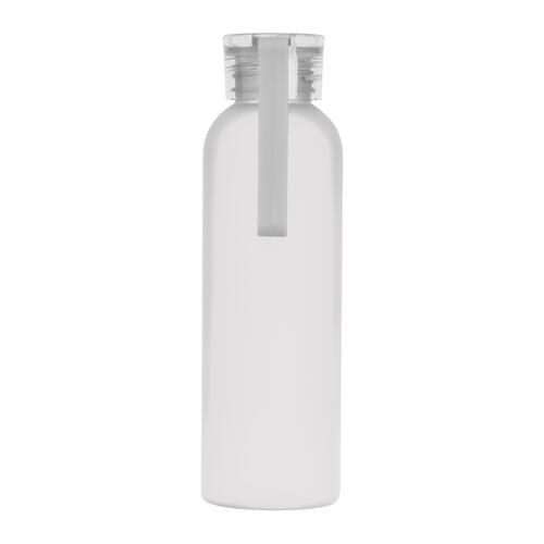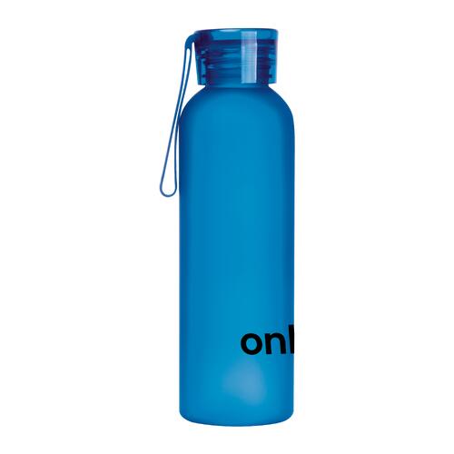 - Drinkfles van PET met een rubberen draaglus aan de dop en een inhoud van 600 ml