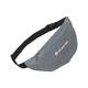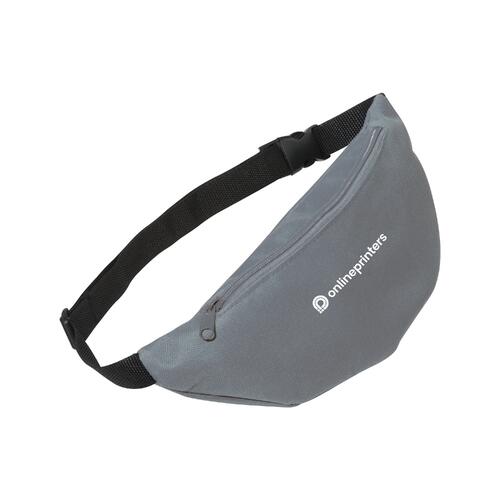 Blauwe stoffen heuptas met verstelbare riem en ritssluiting.