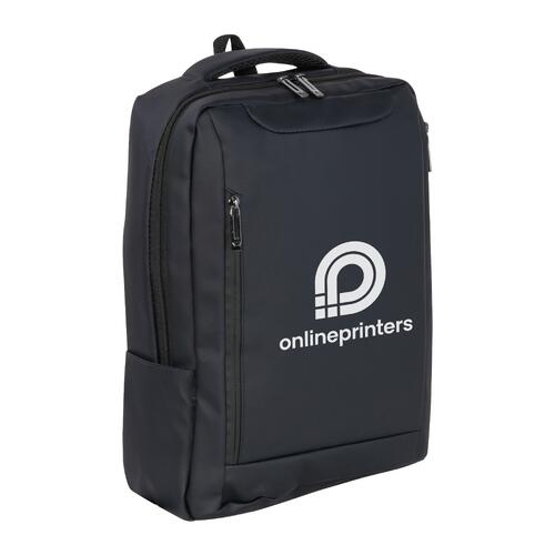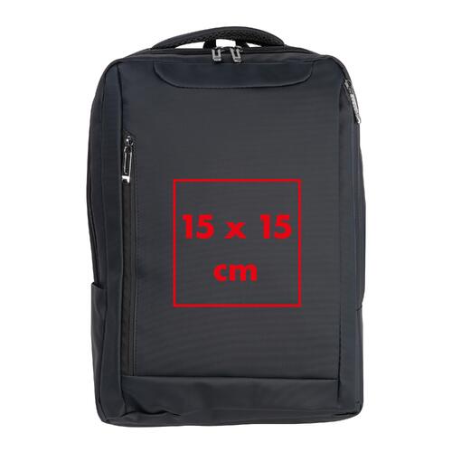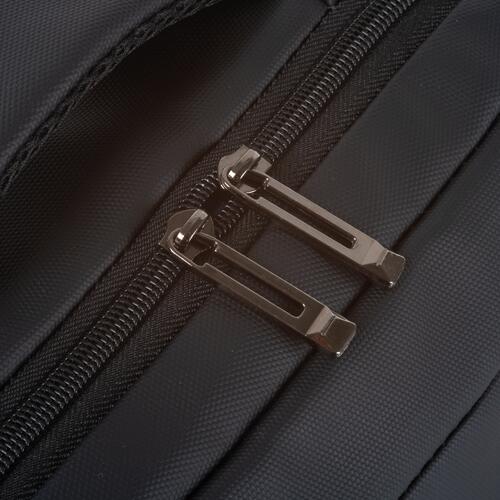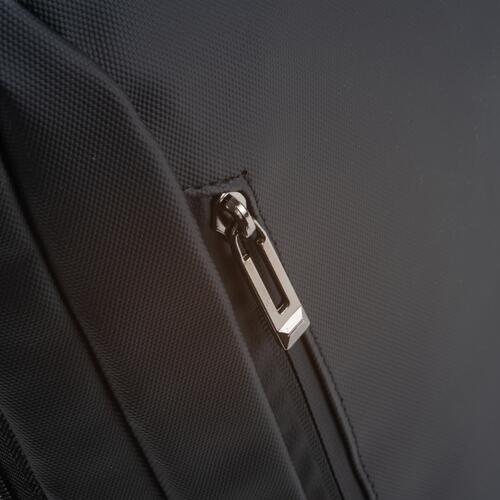 - De rugzak heeft twee voorvakken met ritssluiting, een groot hoofdvak met gewatteerd laptopvak, diverse insteekvakken aan de binnenkant, gewatteerde schouderbanden, een draaggreep en een band aan de achterkant voor bevestiging aan een trolley