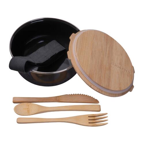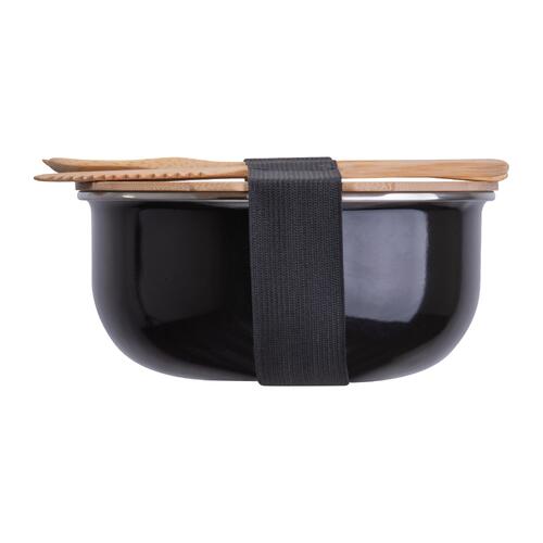 - Lunchbox (inhoud 700 ml) van metaal met bamboe deksel, inclusief een lepel, vork en mes – eveneens van bamboe