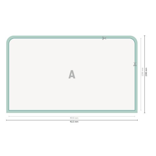 - Gegevensformaat (incl. 53 mm overlap): 411,6 x 239,6 cm