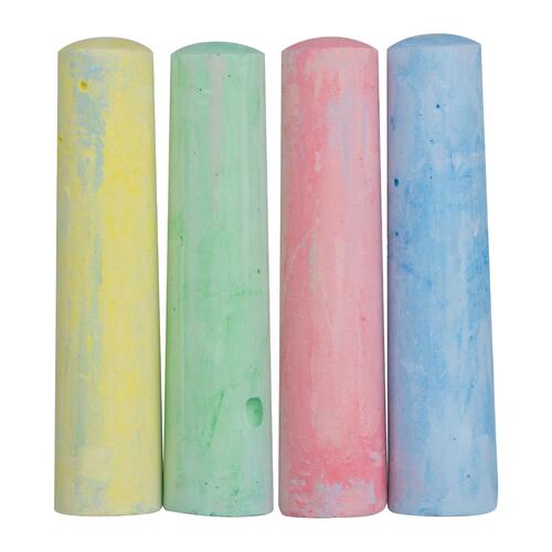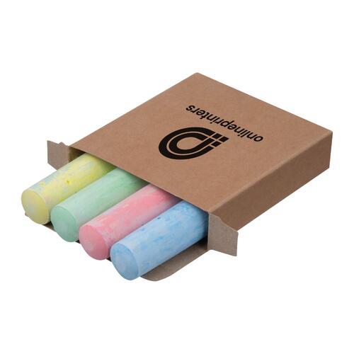 - Stoepkrijtset bestaande uit 4 krijtjes in blauw, rood, groen en geel in een kartonnen doos
