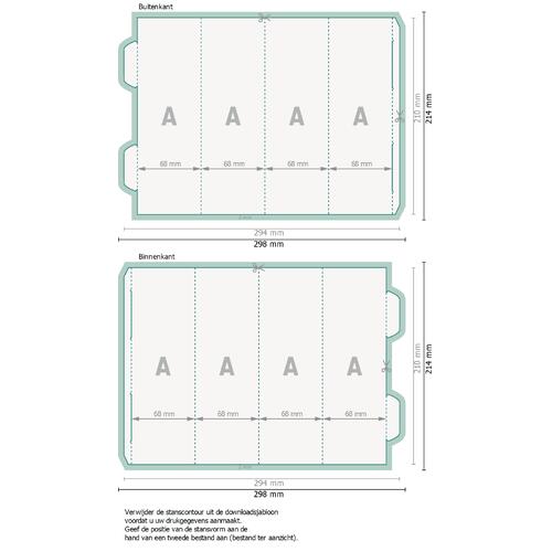- Gegevensformaat (incl. 2 mm afloop): 29,8 x 21,4 cm