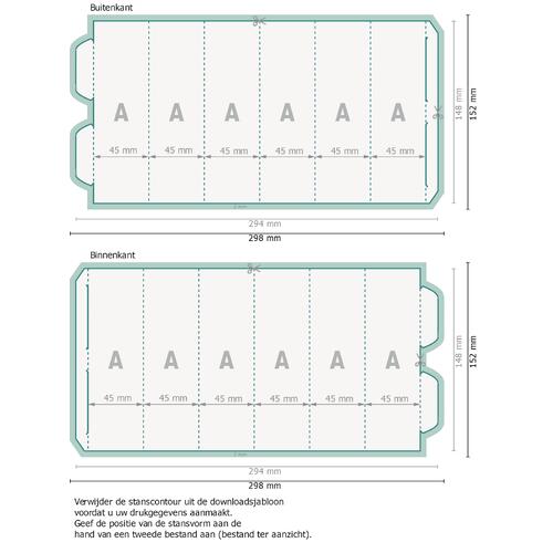 - Gegevensformaat (incl. 2 mm afloop): 29,8 x 15,2 cm