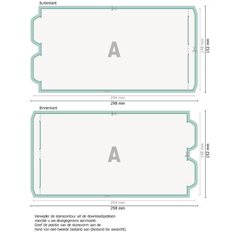 - Gegevensformaat (incl. 2 mm afloop): 29,8 x 15,2 cm