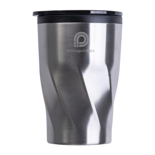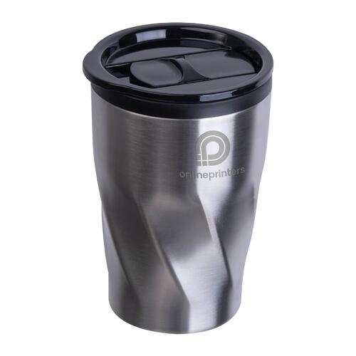 - Dubbelwandige thermobeker van roestvrij staal met een binnenkant van kunststof (PP), een deksel met schuifopening en een inhoud van 350 ml