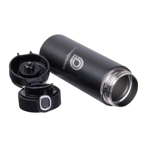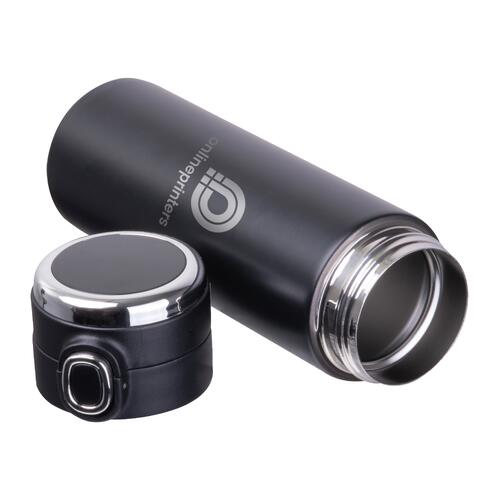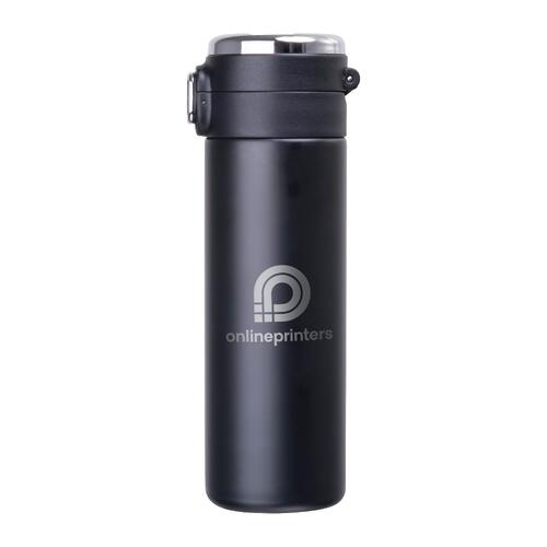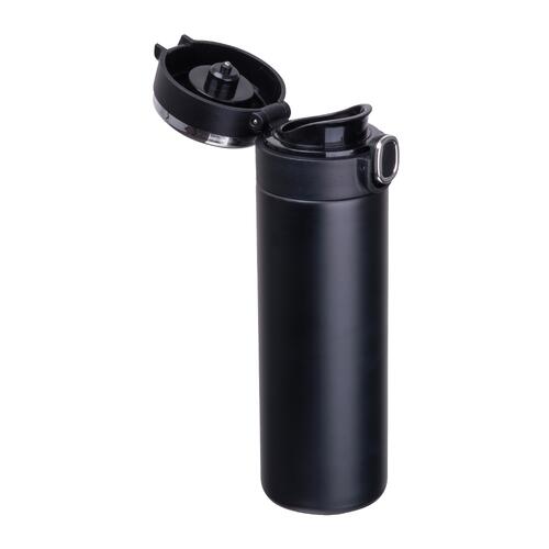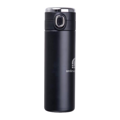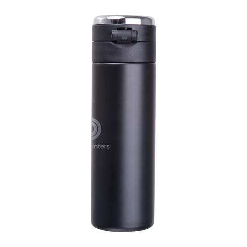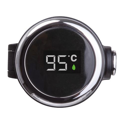 - Vacuüm geïsoleerde fles (inhoud 420 ml) van roestvrij staal met temperatuuraanduiding in de dop en veiligheidsvergrendeling