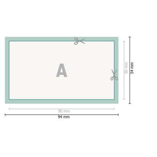 - Gegevensformaat (incl. 2 mm afloop): 9,4 x 5,4 cm