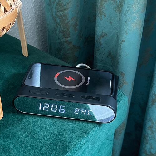 - Wekker met spiegeldisplay en draadloze oplaadfunctie